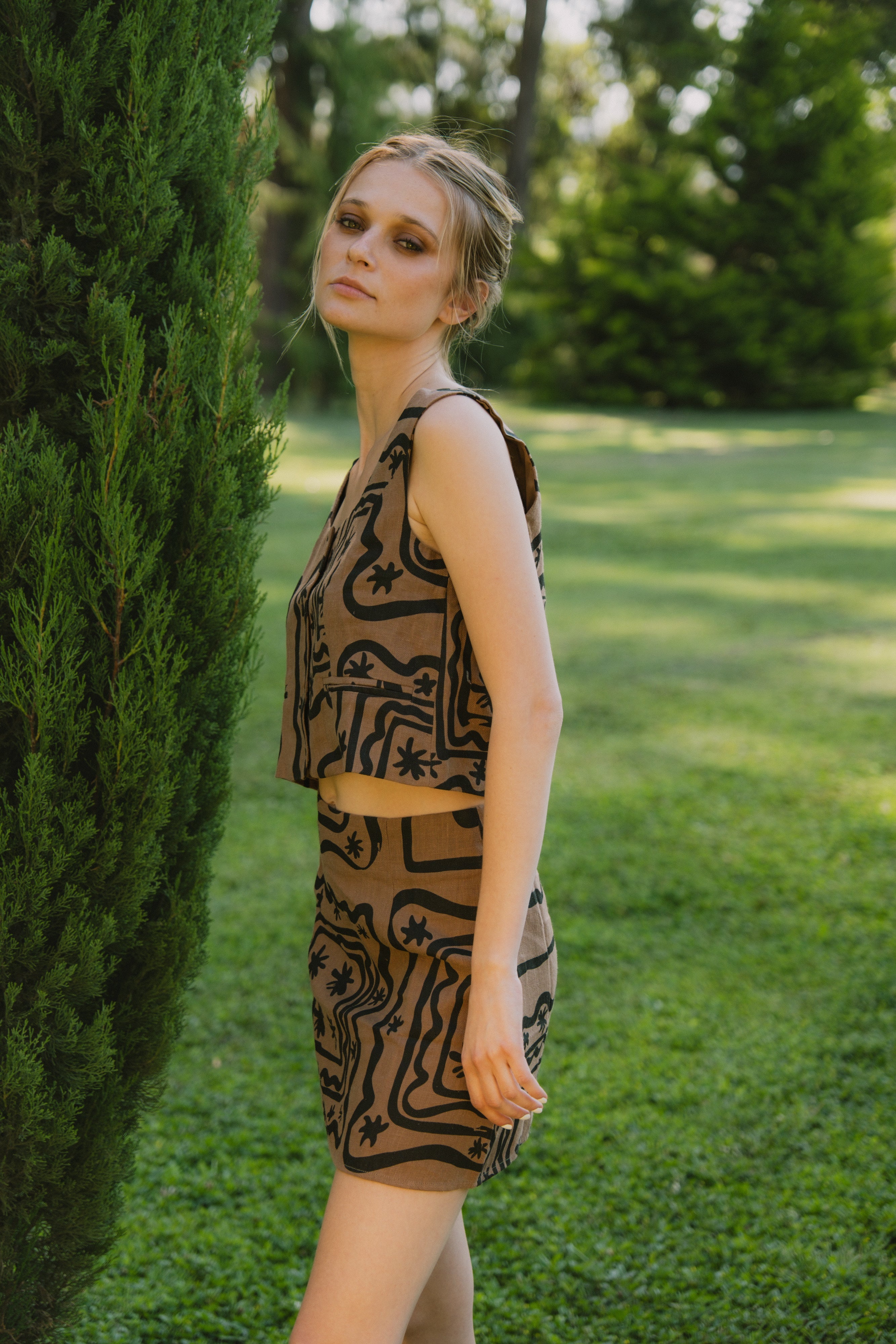 A linen blouse for summer that is lightweight, fresh, and breathable—ideal for the season. Usually styled as part of a set, this piece offers both comfort and elegance. Linen is a natural material that allows air circulation, keeping you cool in the heat, while its soft and fluid texture adds a relaxed and sophisticated style.