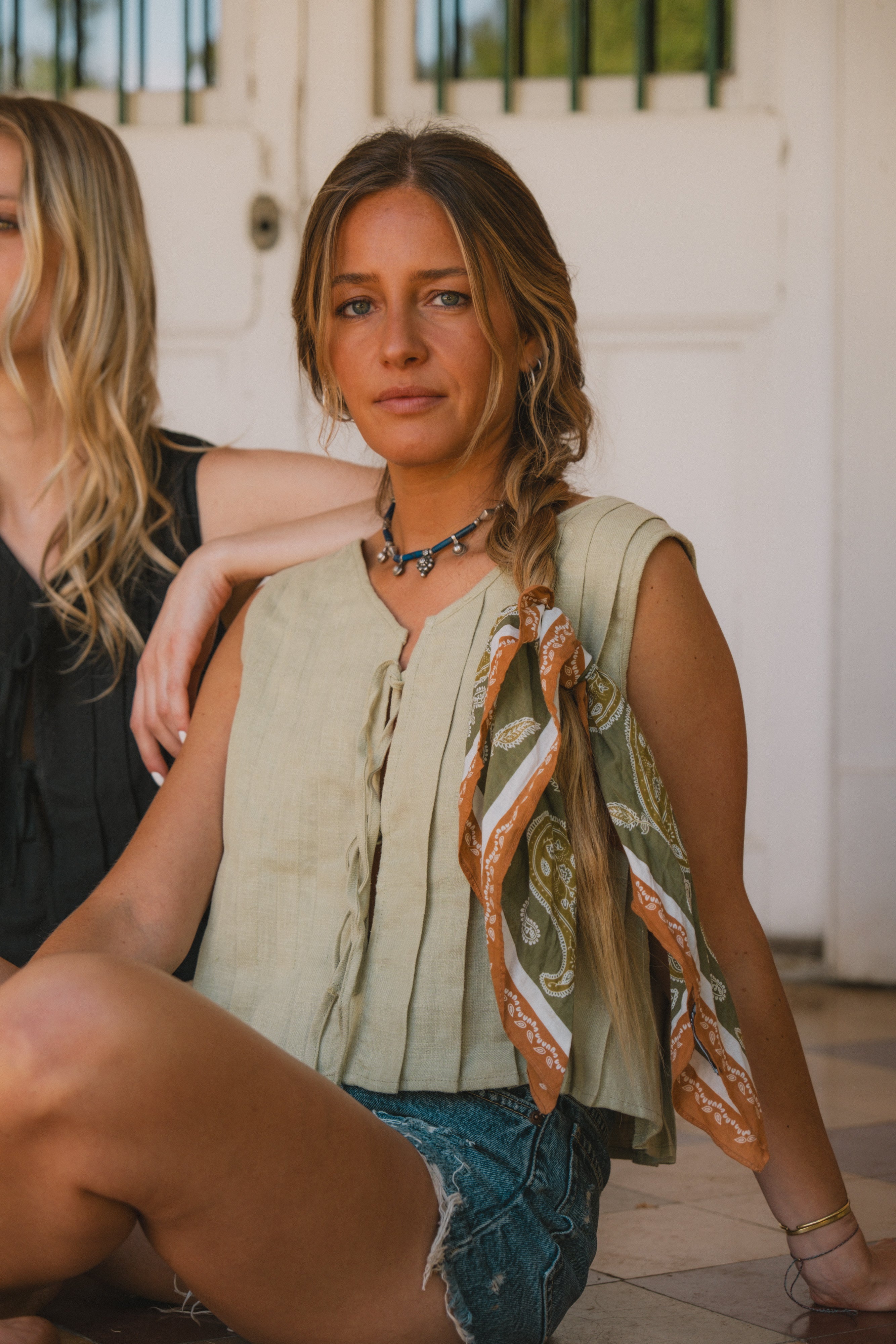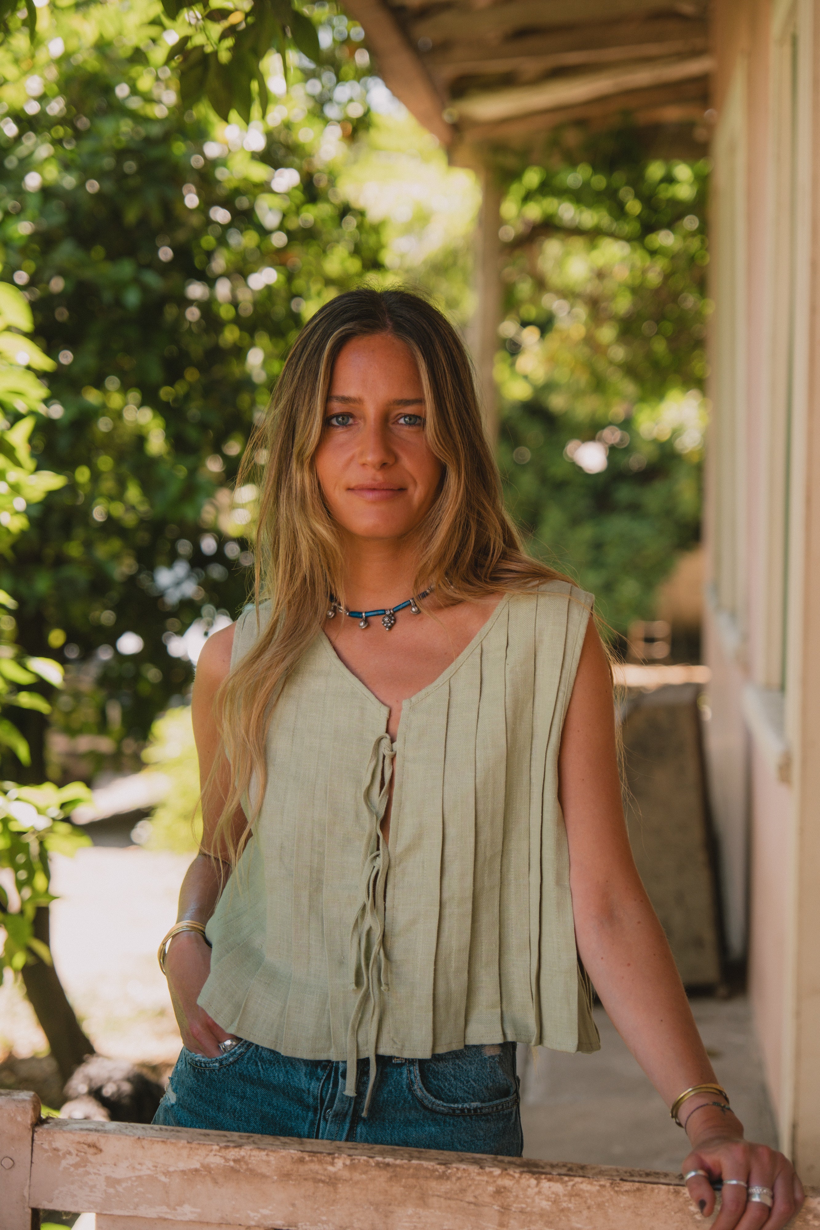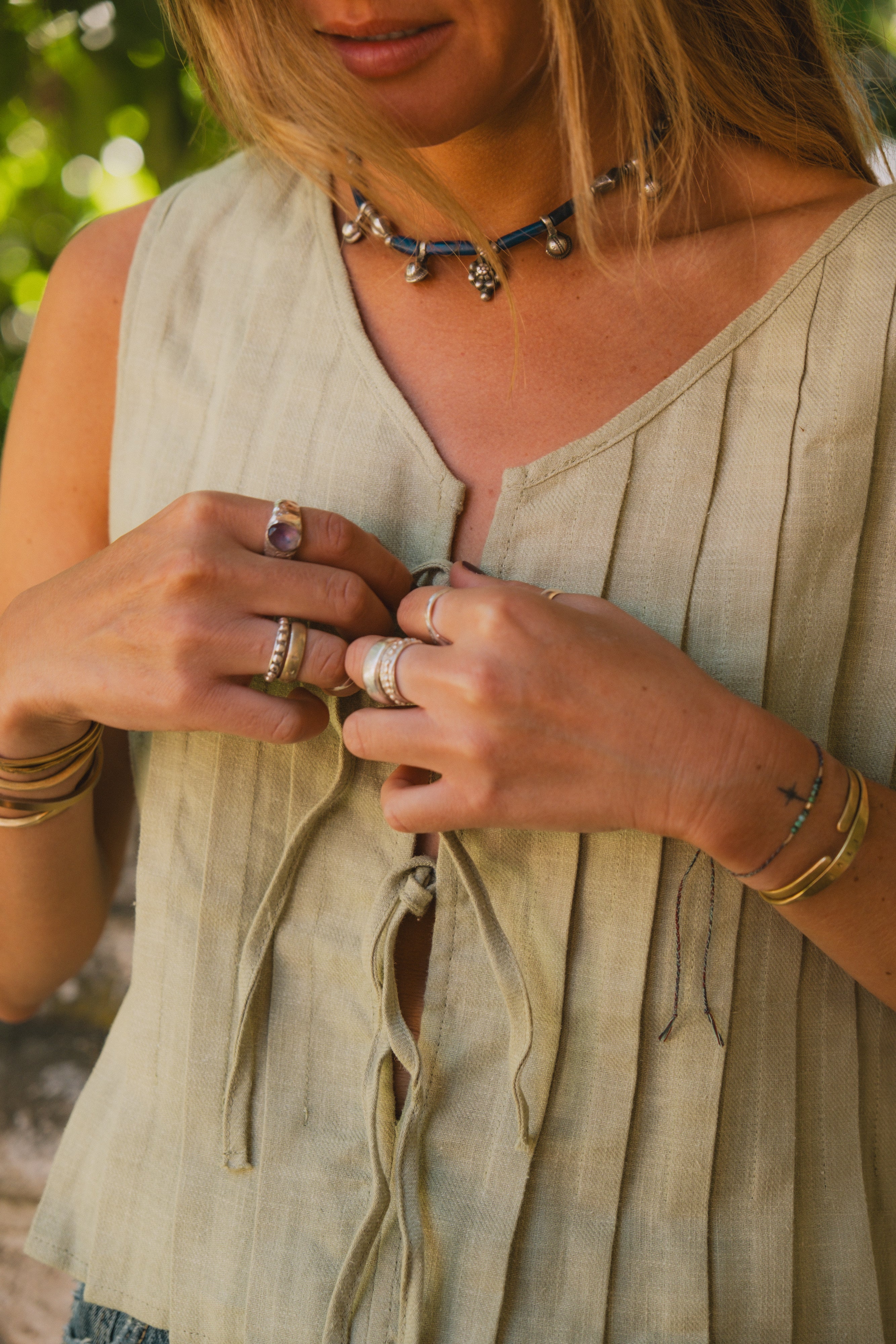 Our linen summer top is lightweight, fresh, and breathable—perfect to keep you comfortable during the season. Made of linen, a natural material that allows air circulation, it provides a refreshing feel. Its simple yet elegant design makes it ideal for casual and relaxed looks.